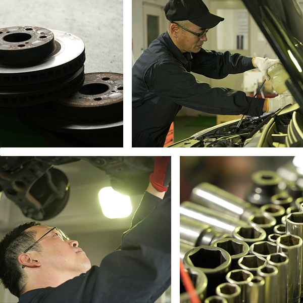 重要なブレーキの分解整備の100%実施、オイル漏れや不良箇所の複数人での確認作業。次回車検まで安心して乗っていただけるように、事故防止を目的とした整備もご提案します。